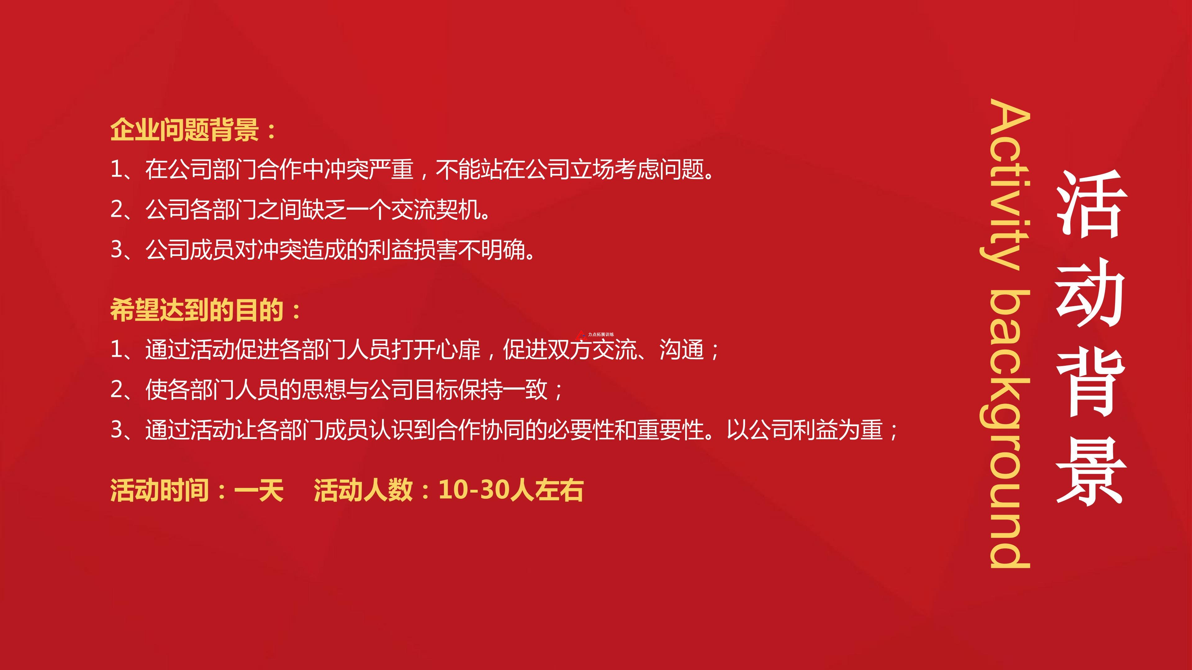 1、通過活動(dòng)促進(jìn)各部門人員打開心扉,促進(jìn)雙方交流、溝通;