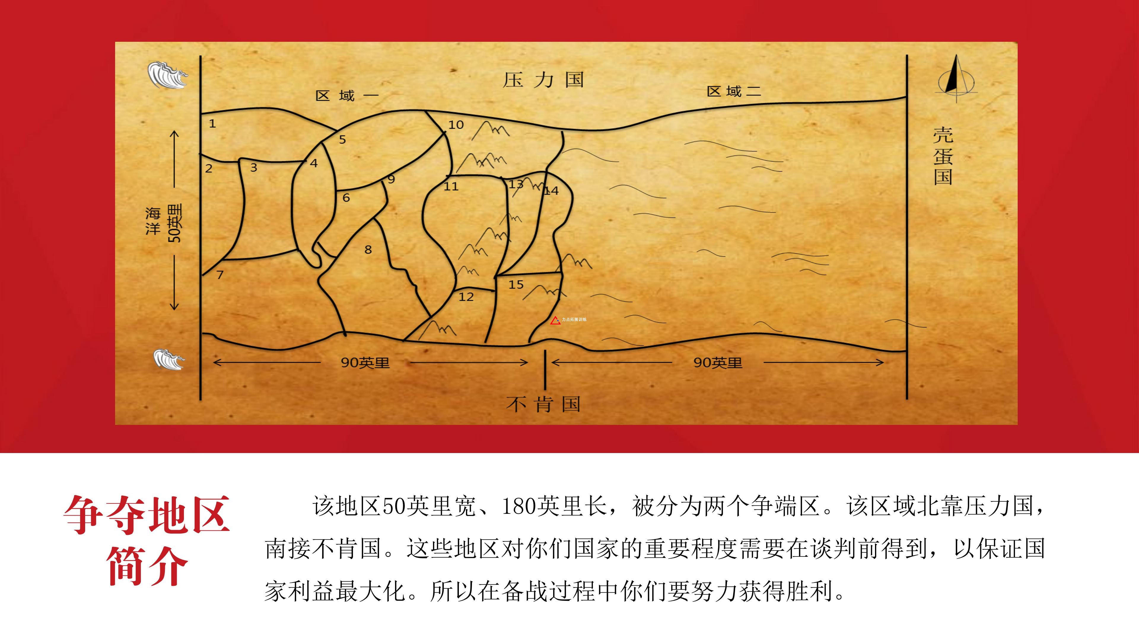 壓力國和不肯國之間存在著沒有解決的國界之爭, 這種狀況引起了政治、經(jīng)濟(jì)和文化方面持續(xù)的紛爭?,F(xiàn)在兩個(gè)國家將進(jìn)行最后一次談判。